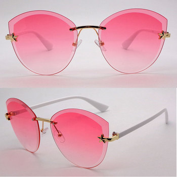 उच्च गुणवत्ता टिकाऊ सामग्री लक्जरी शैली rimless बड़े ढाल लेंस polarized फैशन महिलाओं धूप का चश्मा